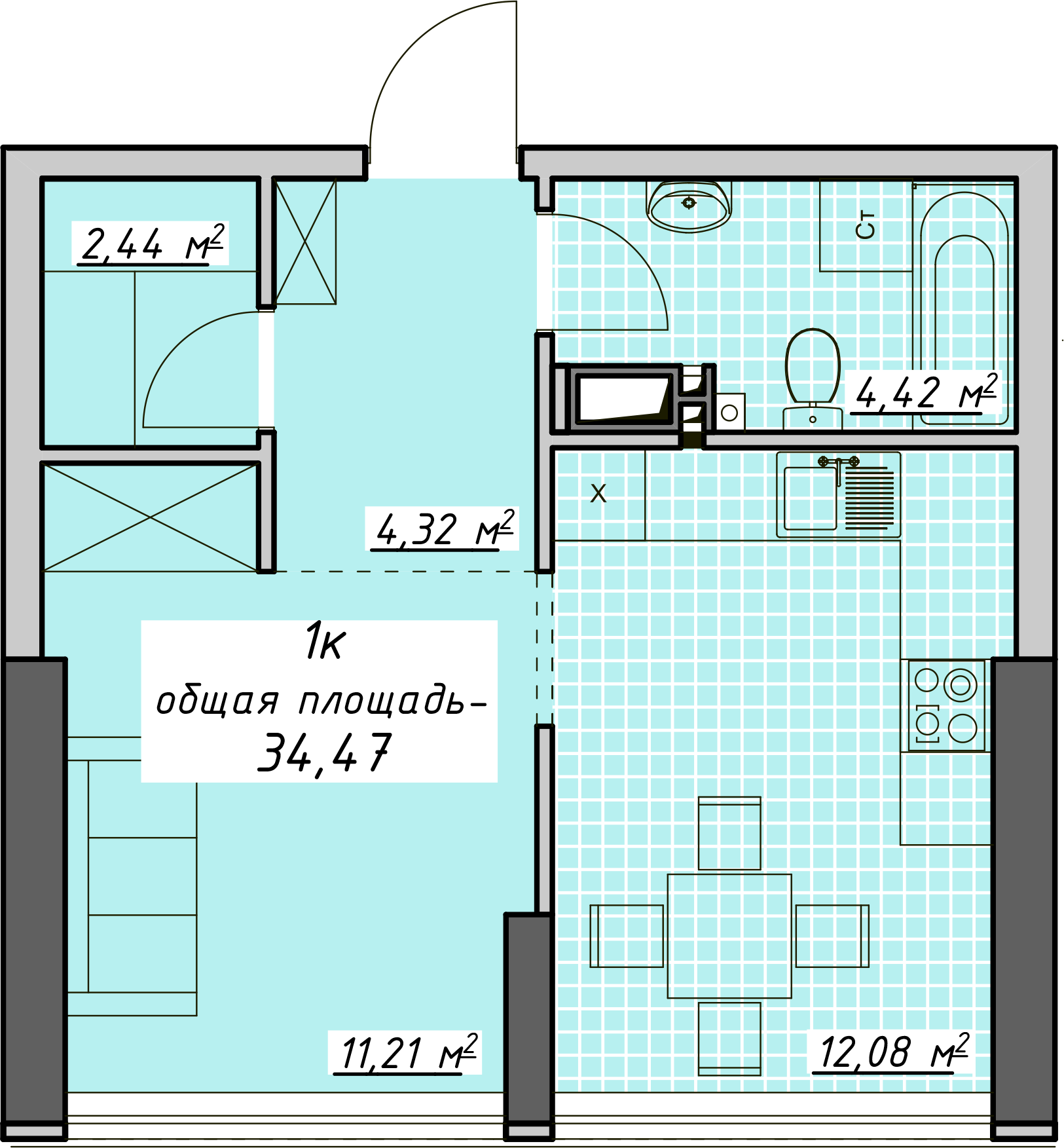 Поверх: 10Кімнати: 1Площа: 34.47 м2Здача: дом сдан